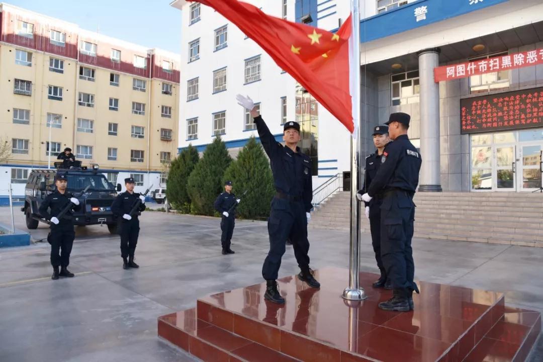 上午10時整,全體民輔警整齊列隊、莊嚴肅立,向冉冉升起的五星紅旗莊嚴敬禮。