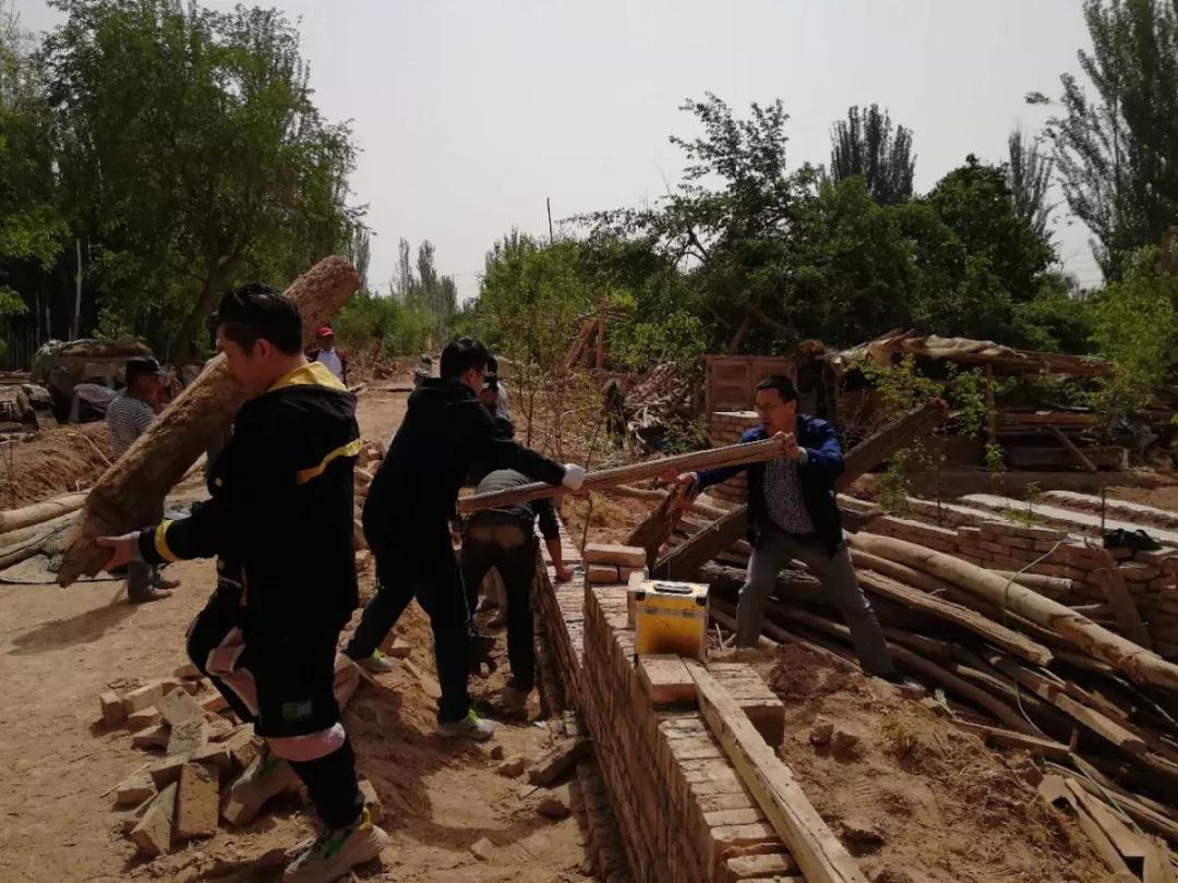 5月9日一大早,全體結(jié)親干部集中到村民阿西木·賽麥提家,幫助年事已高的老人清理庭院里房屋拆遷剩下的廢木料和雜物。