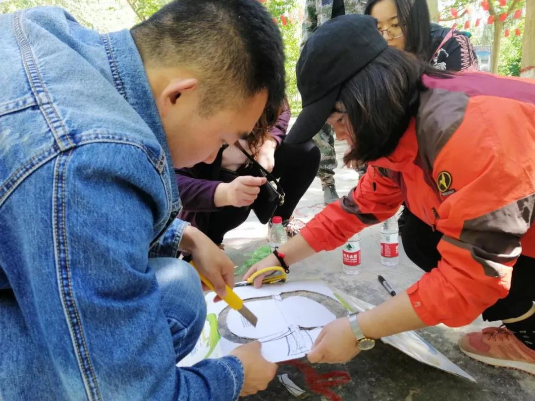 調色、涂色、描邊,第一次干這種活的年輕干部們身上、褲上、鞋上沾滿了油漆,但看著涂好的盾牌和各種指示牌,成就感瞬間滿滿。
