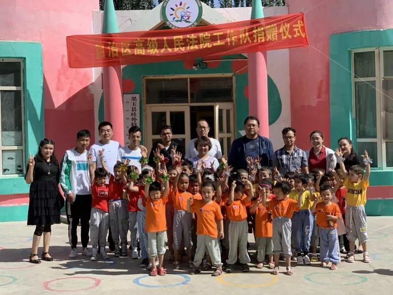 “六·一”兒童節前夕,新疆維吾爾自治區高級人民法院駐和田地區墨玉縣吐外特鄉喀拉亞尕其村“訪惠聚”工作隊在該村幼兒園舉行了捐贈新衣活動,高院信息技術處黨支部結親干警參加了捐贈儀式。