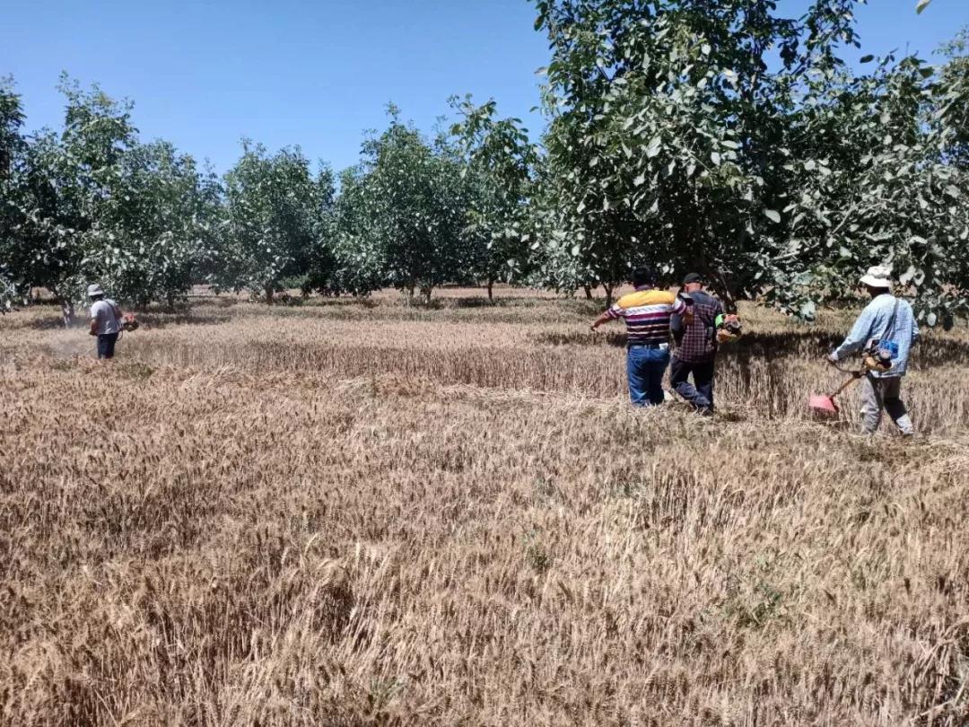 新疆平安網訊(通訊員 薛富尹)6月的和田地區墨玉縣天氣異常炎熱,核桃林間套種的冬小麥成熟泛黃。近一周來,新疆維吾爾自治區高級人民法院駐墨玉縣吐外特鄉庫木博依村“訪惠聚”工作隊與村“兩委”一起走訪入戶訪貧問苦,針對部分家庭夏收夏種勞動力短缺的情況,及時組織志愿者服務隊幫助困難家庭開展夏收夏種勞動。