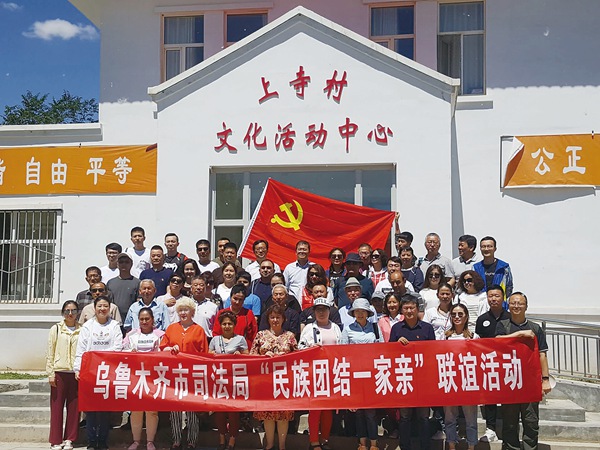 6月28日,烏魯木齊市司法局全體黨員干部與親戚80余人來到烏魯木齊縣永豐鎮上寺村舉行慶祝建黨98周年主題黨日暨民族團結聯誼活動。