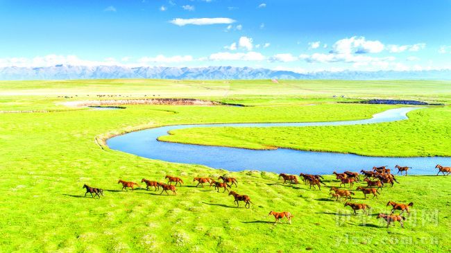 在伊犁河谷分布的大大小小草原中,那拉提草原、唐布拉草原、鞏乃斯草原、昭蘇草原最具代表性。與其他地方的草原不同,伊犁草原呈現出凹凸起伏,旋律般高低綿延,或在山頂,或在山坡,或在山谷,與一片片森林、一條條溪澗共同組成一部大草原的交響曲。