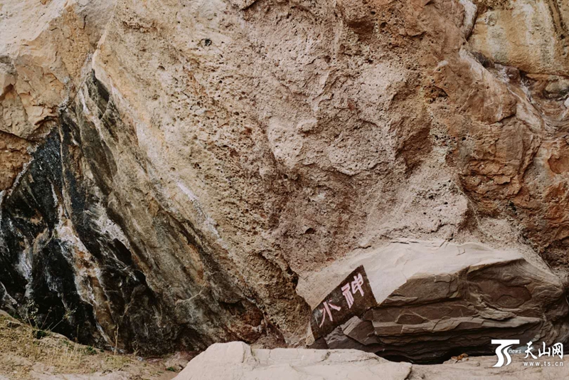 在山體底部右側,還有一處外壁部分坍塌的巖洞,裂隙中,不斷有水滲出,被當地牧民視為神水,傳說喝了這里的水能生雙胞胎。現在,這個傳說已經無法考證,但卻成為這里一個獨特的景點。