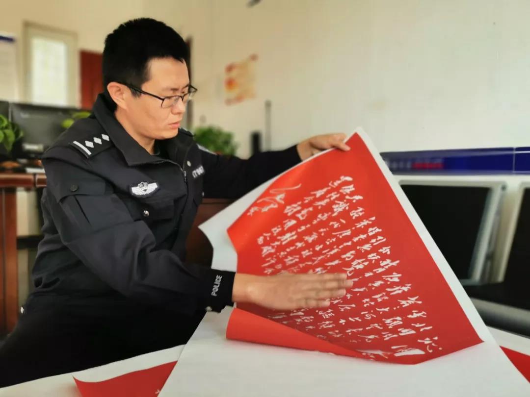 主題確定后,潘峰便開始著手準備,“要做就一定要做最好的!” 基層派出所民警工作繁忙,潘峰就利用工作間隙和休息時間進行創作。國慶前夕,歷時8個月,潘峰將整組作品40多個人物形象全部完成。因為表現形式新穎,刻畫的形象栩栩如生,整組剪紙一經展出,立馬受到了大家的關注。