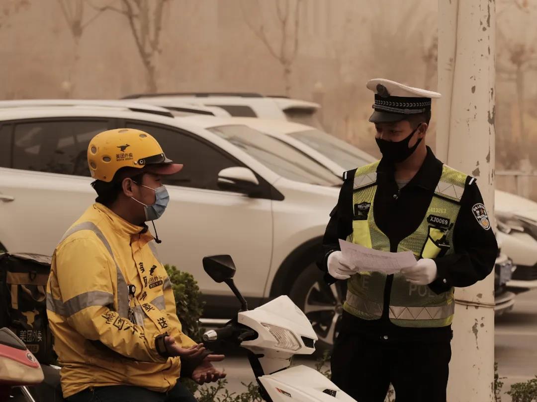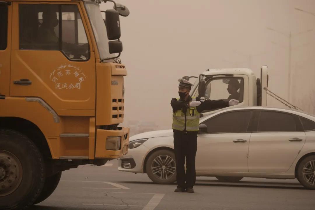 沙塵天氣能見度極低,一定要小心駕駛,闖紅燈、逆向行駛等違反交通秩序行為極易引發(fā)事故。”