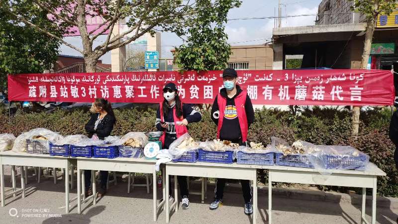 當天,自治區黨委政法委駐疏附縣站敏鄉艾日克貝西(3)村工作隊組織3村7位大棚有機蘑菇種植戶,在大巴扎開展宣傳推廣活動。