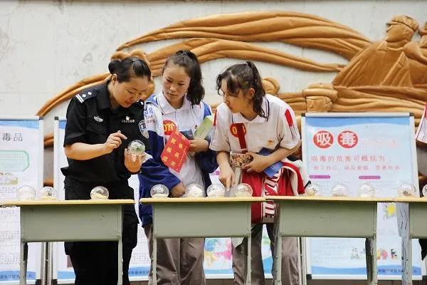 自“6·27”工程實(shí)施以來,校園禁毒宣傳成了主陣地,王玲入校園開展毒品知識(shí)普及。