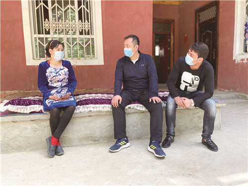 新疆平安網訊 5月8日,在和田地區和田縣巴格其鎮喀斯皮村,自治區監獄管理局干部王健在親戚祖普吐木汗·艾比布拉家吃了“閉門羹”。王健說:“以前他們兩口子天天在家,現在兩人都有了工作,經常找不到人。”