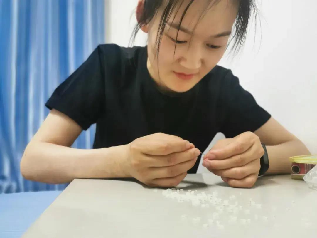 為了練習專注力和指尖靈活性,王曉琴常常選擇在夜深人靜時獨自練習針穿米粒,細小的米粒拿捏起來都并非易事,更何況是用針一粒一粒地串起來,對狙擊手的眼力、耐心、細心、控制力和心理承受能力都是極大的考驗。針穿久了,眼睛會花;勁兒太小,穿不過;勁兒太大,米又會開裂。有時稍不留神,針尖就會扎破手指。由于創可貼會影響手指的靈敏度,她就忍著疼痛,任憑指尖的血往外滲流……