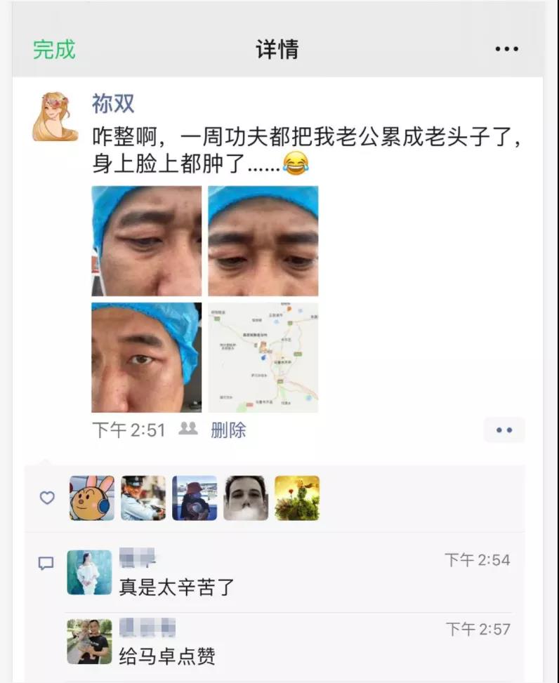 “可能是穿這一整套防護服太悶熱了,臉上開始長疹子,越長越多,連眼角都有了,有的還化膿了。關鍵是特別疼,汗水再一蟄,別提多難受了!”馬卓解釋著,還不忘囑咐妻子,千萬別給父母說,免得他們操心。