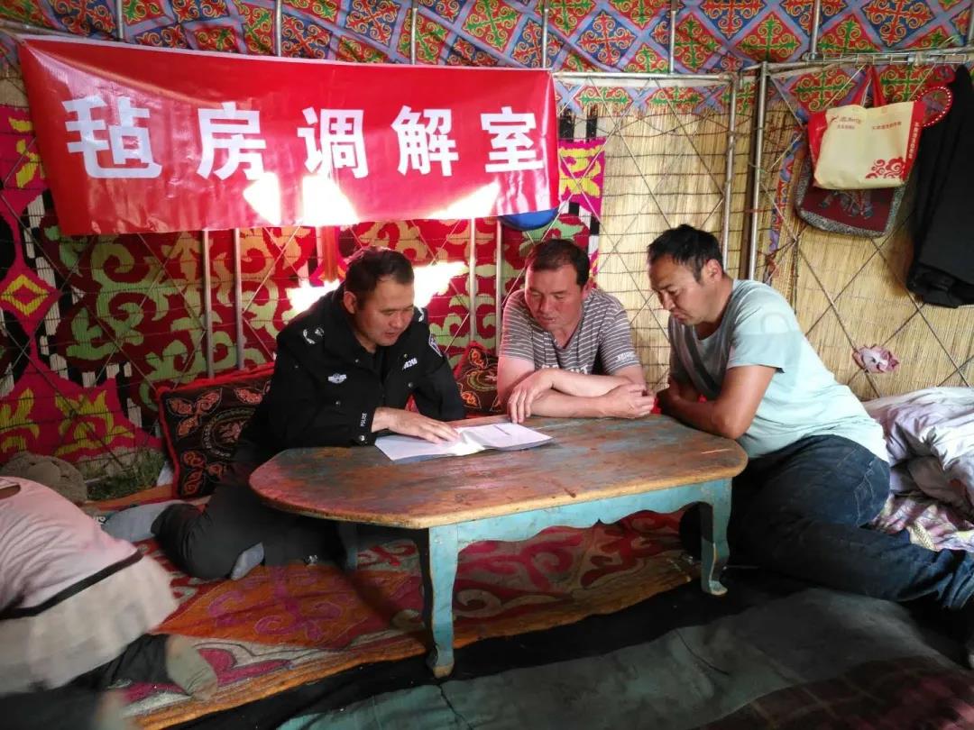 青河縣司法局局長徐輝介紹,各鄉(鎮)司法所工作人員每月按照牧民轉場情況,提前設計宣傳、調解思路,開展法律法規宣傳工作,同時按照鄉黨委指定的“氈房調解室”開展調解工作。