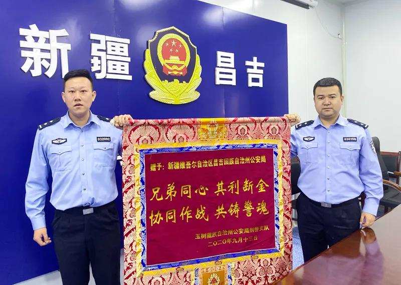新疆平安網(wǎng)訊 9月28日,新疆昌吉回族自治州公安局收到青海省玉樹(shù)州公安局題有“兄弟同心、其利斷金,協(xié)同作戰(zhàn)、共鑄警魂”的錦旗,以此感謝昌吉州公安局對(duì)案件偵作出的貢獻(xiàn)。