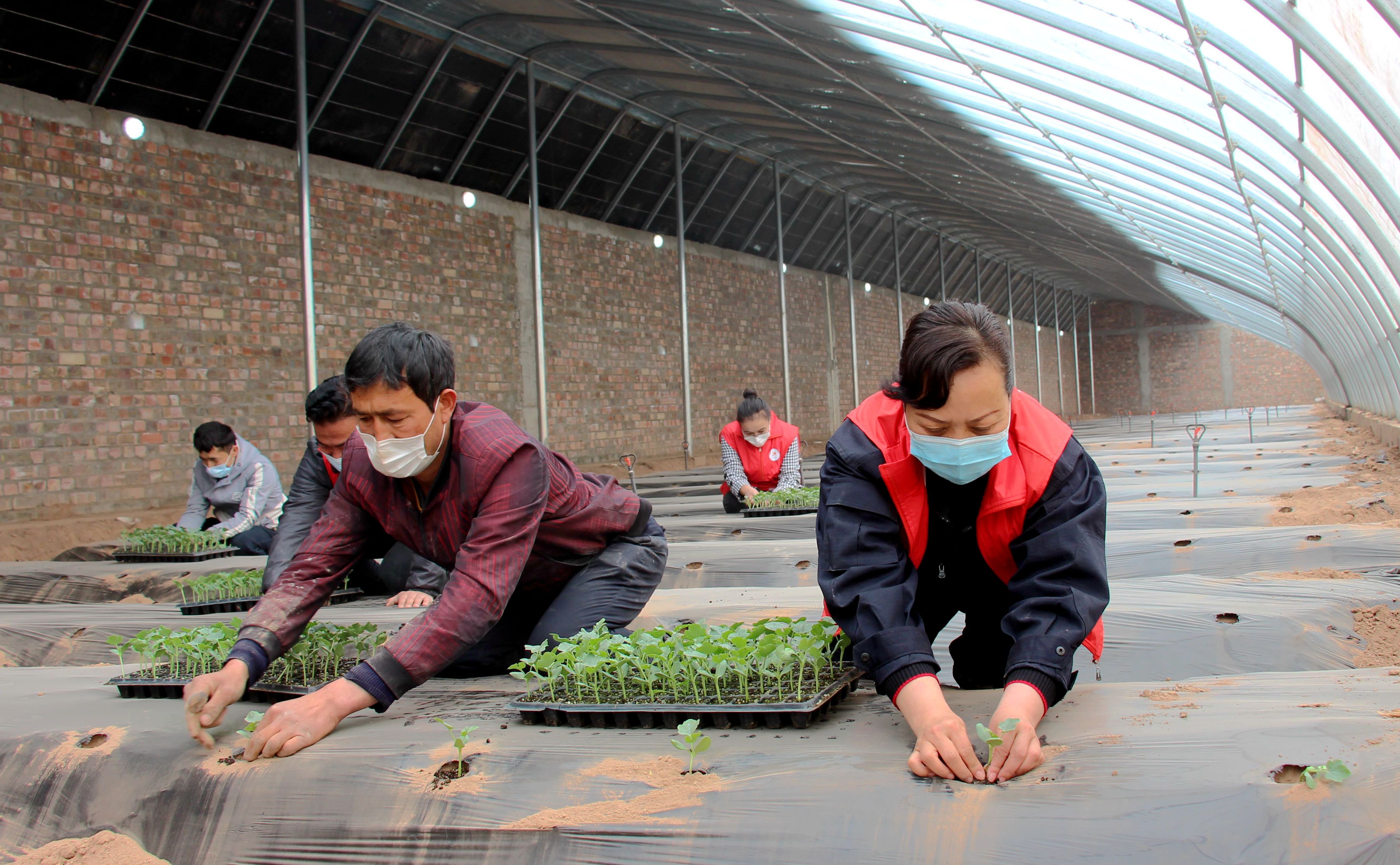 春播時節(jié),喀什地區(qū)疏附縣站敏鄉(xiāng)艾日克貝西村59戶承包溫室大棚的農(nóng)戶忙起來了……自治區(qū)黨委政法委“訪惠聚”駐村工作隊(duì)也沒閑著,全力投入助農(nóng)春耕備耕生產(chǎn)。圖為工作隊(duì)員幫助家中勞動力不足的3小隊(duì)村民麥麥提江·薩迪克栽種西瓜苗。