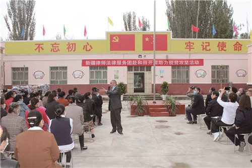在阿克蘇、巴州的3個街道、6個鄉(xiāng)鎮(zhèn)開展普法宣講時,普法志愿者以“公民如何做一個忠誠愛國者”為主題,從深入學(xué)習(xí)黨的十九大精神、維護民族團結(jié)等方面開展主題宣講,教育引導(dǎo)大家要自覺踐行社會主義核心價值觀,做一名有夢想、有信念、有擔(dān)當(dāng)?shù)墓瘛?/p>