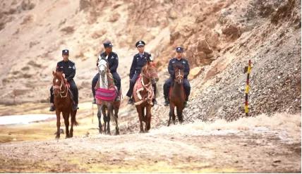 4月17日,體驗民警們來到喀什地區塔什庫爾干塔吉克自治縣班迪爾鄉的坎爾洋村,跟隨“全國最美警察”那迪拜克·阿瓦孜拜克,繼續踏上了重走英模之路的征途。