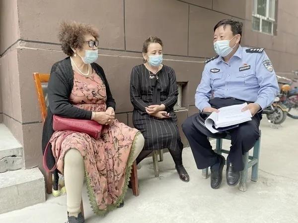 5月7日20時,博樂市公安局東風派出所團結社區(qū)民警桑巴和居民嘮家常,他邊問邊記錄著。
