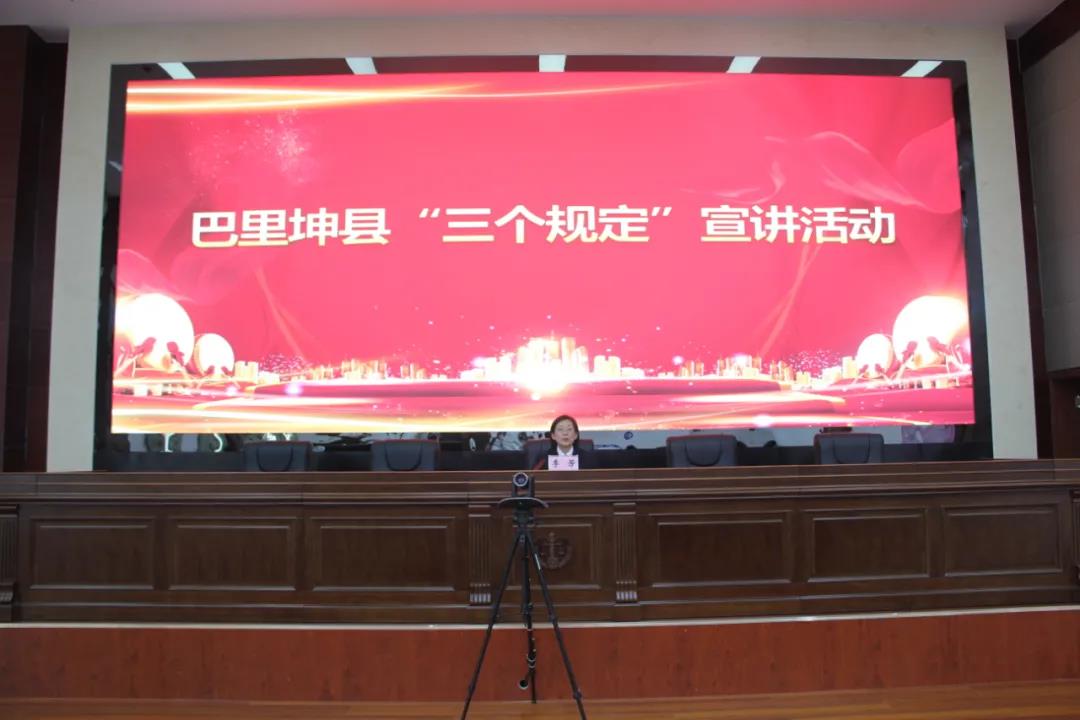 新疆平安網(wǎng)訊 6月4日下午,哈密市巴里坤哈薩克自治縣人民法院黨組書記、副院長李芳在縣法院專題宣講“三個規(guī)定”,進一步營造全社會踐行“三個規(guī)定”的濃厚氛圍,全面提升全縣非政法系統(tǒng)黨政領(lǐng)導(dǎo)干部對“三個規(guī)定”的知曉率和支持度,深入推進政法隊伍教育整頓走深走實。