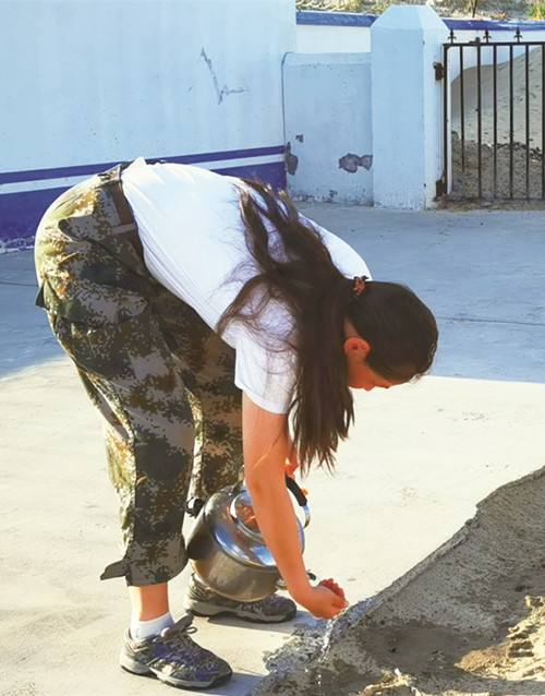 因地形特殊,女子護(hù)邊站連續(xù)打的3口井都不出水,目前,吉木乃縣縣委政府正在想辦法打第4口井。眼下,站里用水全靠附近的護(hù)邊站支援。每天中午送來的4大桶水僅夠隊員們的日常生活,要洗澡得輪班去附近的護(hù)邊站。炎熱的夏天,一周才能洗一次澡,對女子護(hù)邊隊員來說,這是最難捱的考驗。風(fēng)沙“磨礪”下,她們臉色黝黑、皮膚粗糙,美,成了奢望。