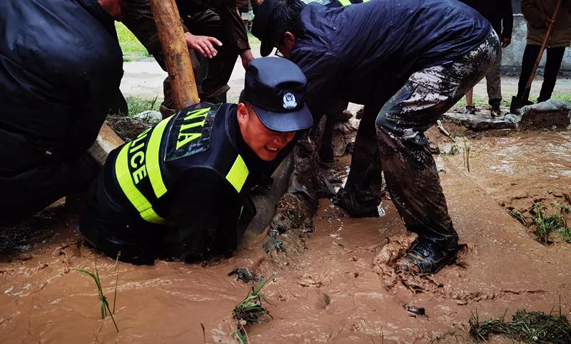 在現場,民輔警們下水坑、疏渠道、轉牲畜,挨家挨戶查看受災情況,共排查險情40余處、轉移牛羊等牲畜200余頭,全力保障人民群眾生命財產安全。(李展朋 )