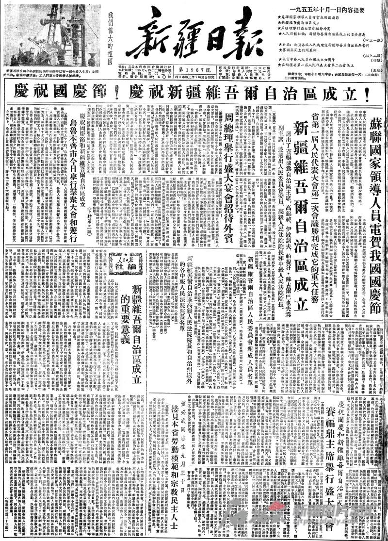 1955年10月1日,新疆維吾爾自治區宣告成立。