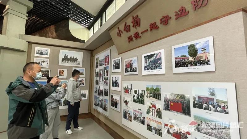 當日,從湖北遠道而來的甄友新等十余名游客在小白楊哨所參觀留影。一件件陳列在展柜里的物品、一幅幅歷史圖片,震撼著他們的心靈。