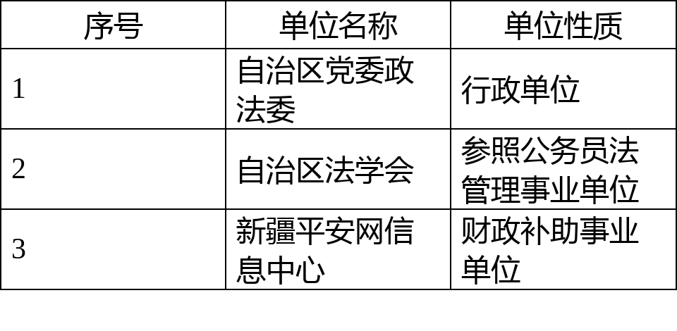 納入自治區(qū)黨委政法委2020年度部門決算編制范圍的單位名單見下表: