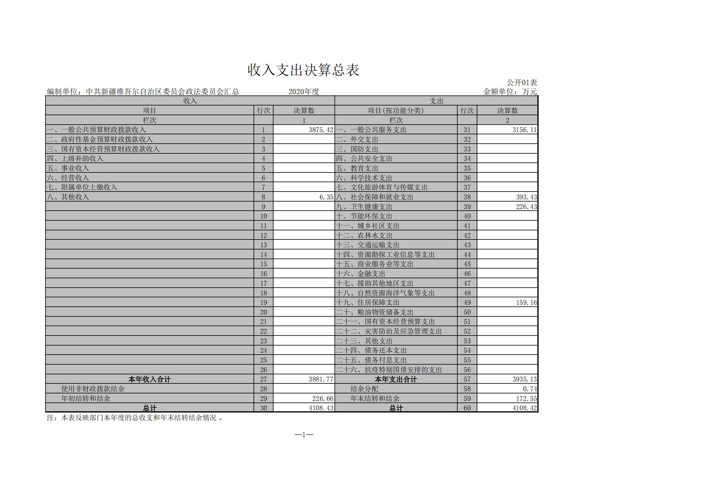 中共新疆維吾爾自治區(qū)委員會(huì)政法委員會(huì)2020年度部門決算公開說(shuō)明(匯總)