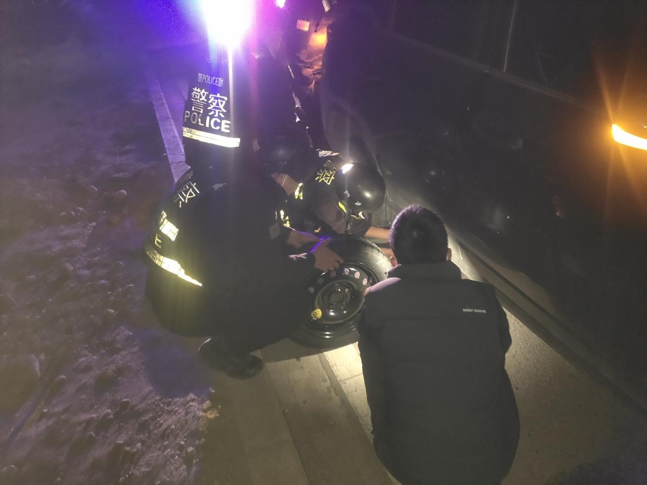 民警立即上前查看情況,經(jīng)詢問(wèn)得知,車主李某開(kāi)車前往溫宿,行至復(fù)興南路路段時(shí)車輛后方輪胎突然爆胎,無(wú)法正常前行。本想自己換上備胎,由于自己從來(lái)沒(méi)有遇到到此類情況,工具使用也不熟練,忙活很長(zhǎng)時(shí)間也未能換好。得知這一情況后,民警首先結(jié)合道路實(shí)際情況,在車輛后方放置三角警示標(biāo)志,開(kāi)啟警燈,做好安全防范措施,隨后拿出備胎和千斤頂,幫助群眾更換輪胎,經(jīng)過(guò)20多分鐘的努力,成功將車輛備用輪胎更換完畢。看著民輔警們忙前忙后,李某感激不已連聲道謝。臨行時(shí),民警叮囑司機(jī),備胎不是標(biāo)準(zhǔn)輪胎,只能臨時(shí)應(yīng)急使用,建議盡快更換,同時(shí)今后在出行前要檢查車輛狀況,以避免發(fā)生危險(xiǎn)。