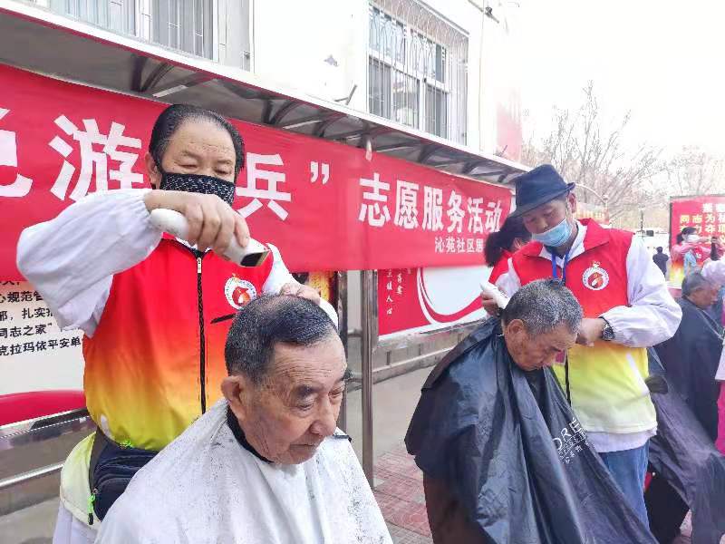 每月10日,中興路街道沁苑社區(qū)廣場(chǎng)都會(huì)格外熱鬧。一大早,“紅色游騎兵”的志愿者已經(jīng)裝備齊全,開始了一天的志愿服務(wù)。理發(fā)、戧刀、按摩、義診……每個(gè)“攤位”的“老板”都熱火朝天地忙碌著,接受服務(wù)的居民臉上都洋溢著笑容。