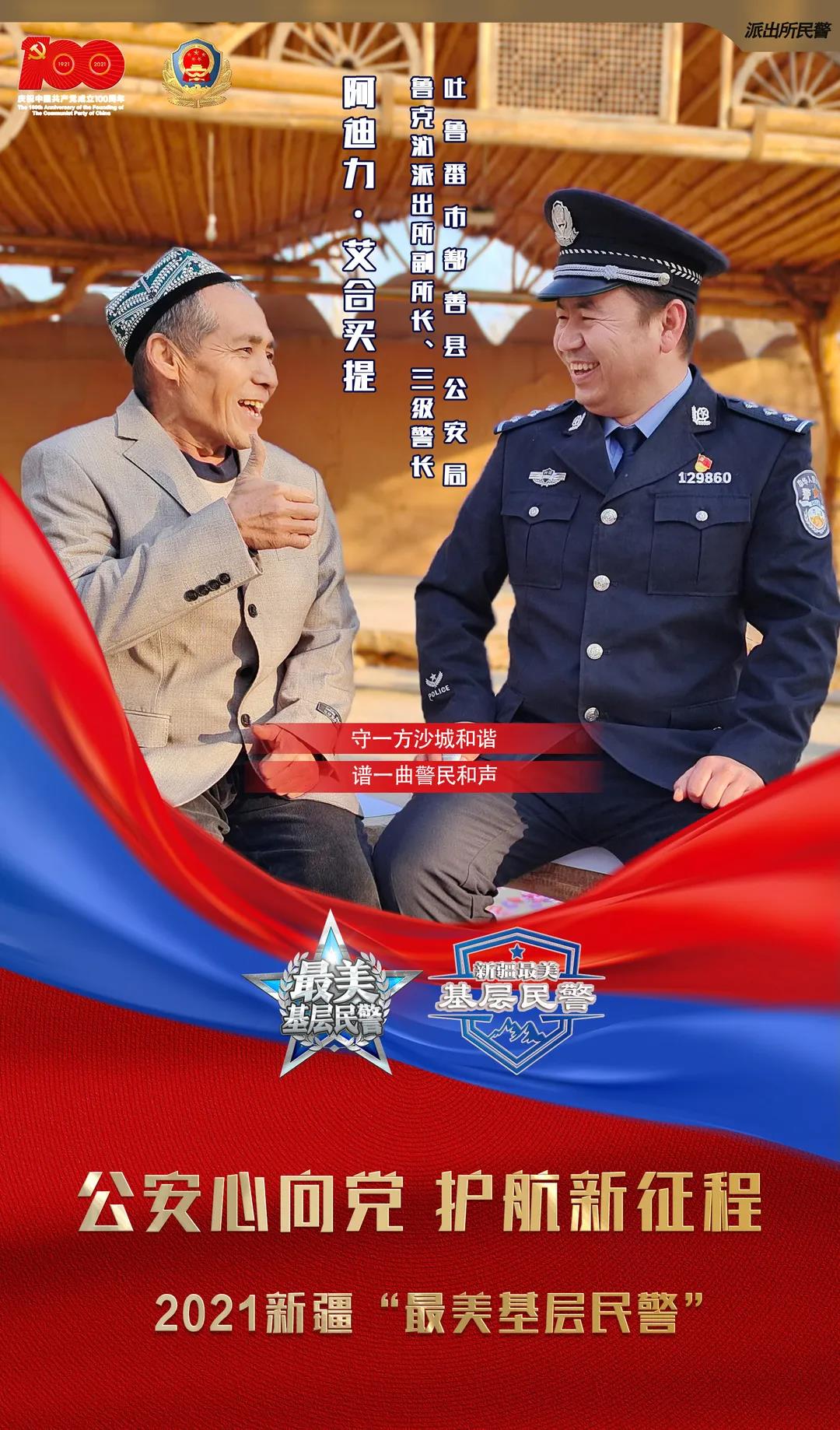 阿迪力· 艾合麥提是“85后”,從警近10年,他先后榮獲個人嘉獎2次,優秀警務室民警2次,個人三等功2次,在2020年吐魯番市公安機關“弘揚先進事跡,鑄牢忠誠警魂”活動中被樹為“先進典型”。