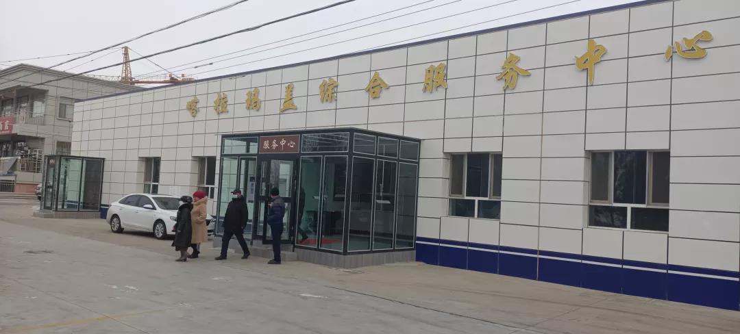 在喀拉瑪蓋鎮(zhèn)中心區(qū)域巴合特社區(qū)的主路邊,一排平房大門上方的“喀拉瑪蓋綜合服務(wù)中心”幾個(gè)大字在陽光照射下閃閃發(fā)光。