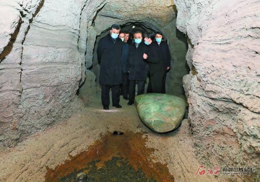 1月21日,自治區(qū)黨委書記馬興瑞在吐魯番市調(diào)研。這是馬興瑞在坎兒井源詳細了解坎兒井保護與利用情況。 石榴云/新疆日報記者崔志堅攝
