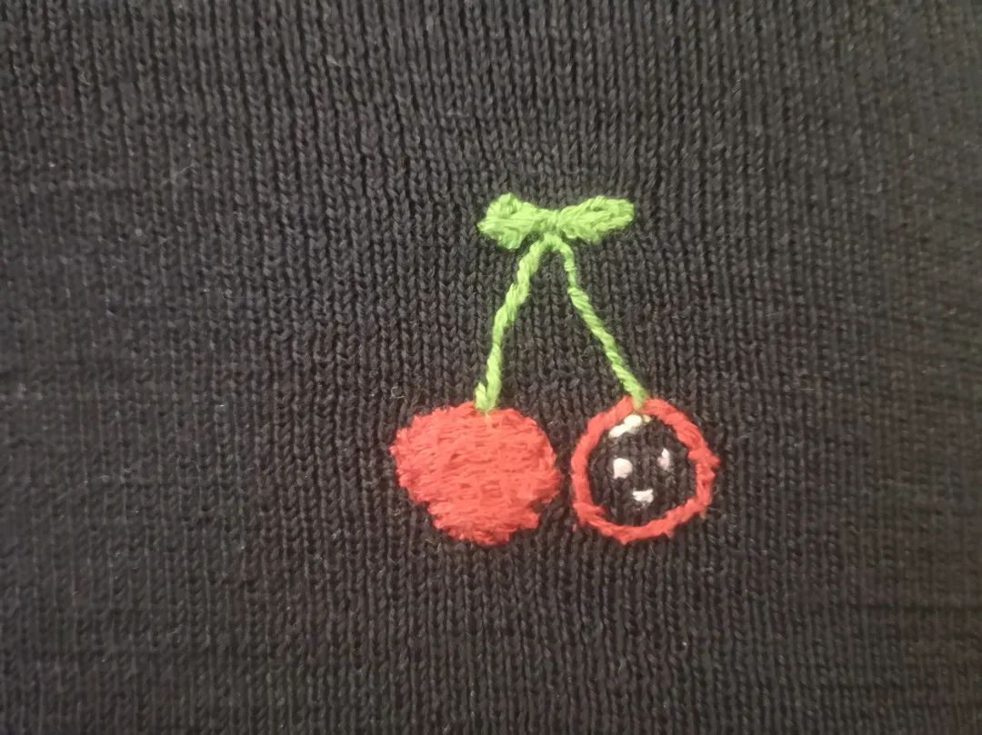 除了做到手穩,還要做到心態穩。為了鍛煉自己的心態,這個90后姑娘喜歡上了刺繡,她說刺繡和射擊很像,都需要一顆平靜的心,要穩得住。她還俏皮地向記者展示了自己的作品——那對兒繡在藏藍色毛衣上的紅彤彤的櫻桃。