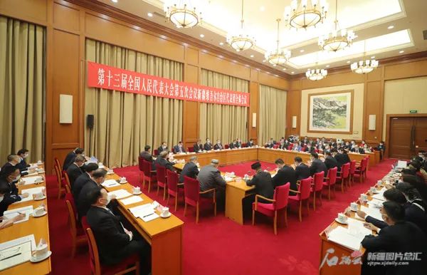 新疆平安網訊 3月5日下午,參加十三屆全國人大五次會議的新疆代表團舉行全體會議,審議政府工作報告。