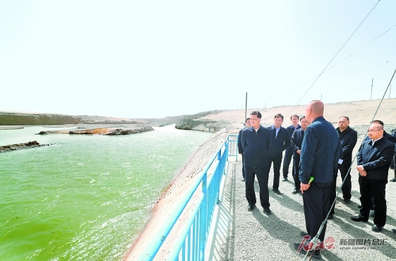 馬興瑞強調,水是新疆經濟社會發展的命脈。南疆地區水資源短缺且分布不均,做好水利工作對于保障水安全、推動經濟社會高質量發展、保障和改善民生、保持生態穩定性等具有十分重大的意義。要完整準確全面貫徹新發展理念,堅持“節水優先、空間均衡、系統治理、兩手發力”的治水方針,樹立系統觀念,堅持流域區域科學統籌、開源節流并重、短期長期兼顧,推動流域水安全有效保障、水資源高效利用、水生態明顯改善;要統籌生產、生活、生態用水,加強和優化水資源供給,提升水資源優化配置能力,堅持節水優先,強化水資源剛性約束,強化重大水利工程項目建設,促進水資源節約集約高效利用;要堅持山水林田湖草沙系統治理,保障河湖生態流量,加快河湖生態保護修復和綜合治理,推進防沙治沙,發展生態產業,實現生態效益和經濟社會效益相統一;要圍繞保障糧食安全,強化農田水利建設,夯實農田灌溉基礎,穩步提升糧食和重要農產品供給能力,大力推進工業、城鎮等領域合理用水、節約用水;要壓緊壓實各級河湖長責任,加強兵地協調聯動、部門單位協同配合,加強水利干部人才、科技基礎等建設,不斷提高水利支撐區域經濟社會高質量發展的水平。