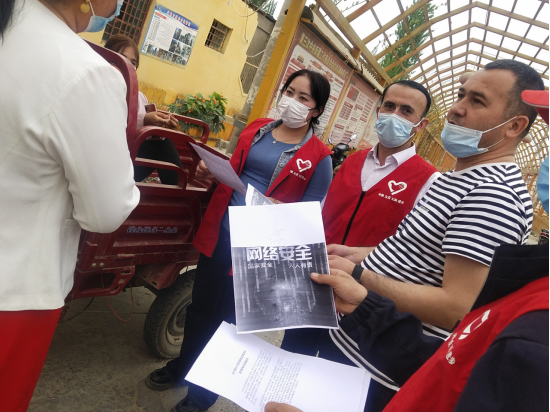 在拜城縣賽里木鎮(zhèn),自治區(qū)人民檢察院各“訪惠聚”工作隊(duì)也以不同形式開展宣傳活動(dòng),駐英買里村工作隊(duì)在走訪中積極開展普法宣傳,駐布干村工作隊(duì)深入田間地頭開展國家安全教育。駐托克買里村工作隊(duì)利用周一升國旗時(shí)機(jī)宣講國家安全法,利用夜校組織群眾觀看國家安全公益宣傳片,提醒群眾身邊易泄密的人和事。拉帕村“訪惠聚”工作隊(duì)借助自身職業(yè)優(yōu)勢(shì),全面解讀應(yīng)對(duì)安全風(fēng)險(xiǎn)的防范常識(shí),結(jié)合民法典中與村民息息相關(guān)的條例法規(guī),結(jié)合當(dāng)前寬嚴(yán)相濟(jì)、認(rèn)罪認(rèn)罰政策規(guī)定,面對(duì)面宣講政策、宣講法律、宣講變化,講極端思想來源、講當(dāng)前和未來幸福美好生活、講國家實(shí)力與影響力,引導(dǎo)群眾轉(zhuǎn)變觀念、解開思想疙瘩。而在和田地區(qū)墨玉縣的奎牙鎮(zhèn)博斯坦村,第一書記吐拉江·阿克木也帶領(lǐng)駐村工作隊(duì)隊(duì)員、志愿者在街道、集市、村民家門口,為村民發(fā)放國家安全知識(shí)手冊(cè),向村民們普及國家安全知識(shí)。