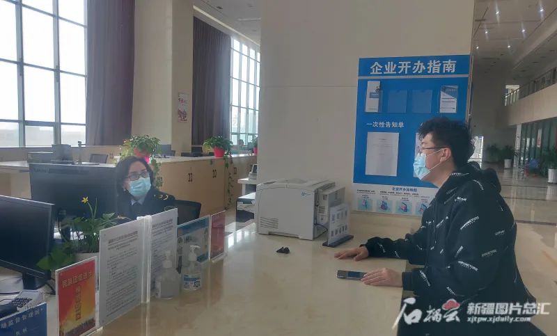 4月1日,喀什地區市場監督管理局經濟開發區登記注冊窗口的工作人員正在回答企業注冊方面的咨詢。喀什地區市場監管局通過全面落實登記注冊“一網通辦”“跨省通辦”“最多跑一次”的改革,使企業常態化登記注冊時間壓縮到2個工作日。石榴云/新疆日報記者 韓沁言 攝