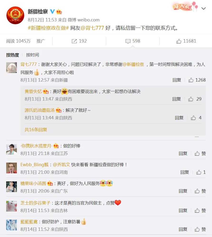 幫網友收莊稼、助農民工討薪、接力救助自殺女孩,在寵粉兒這條路上,“@新疆檢察”真得很拼!