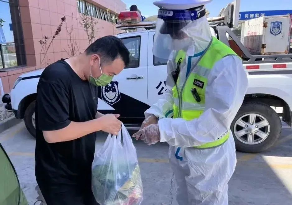 8月17日,高支隊昌吉大隊接到沈先生求助,稱他們一行三人從江蘇來到新疆,準備前往新疆華電昌吉分公司項目部進行設備機組維護,但受疫情影響,企業目前正處于臨時性靜態管理狀態,他們只能在五工臺服務區進行休整,由于出發的匆忙,車上也沒有準備充足的生活物資,無奈之下選擇求助高速交警。得知這一情況后,高支隊昌吉大隊立即安排專人前往商超、菜店采購基本生活物資送到沈先生身邊。
