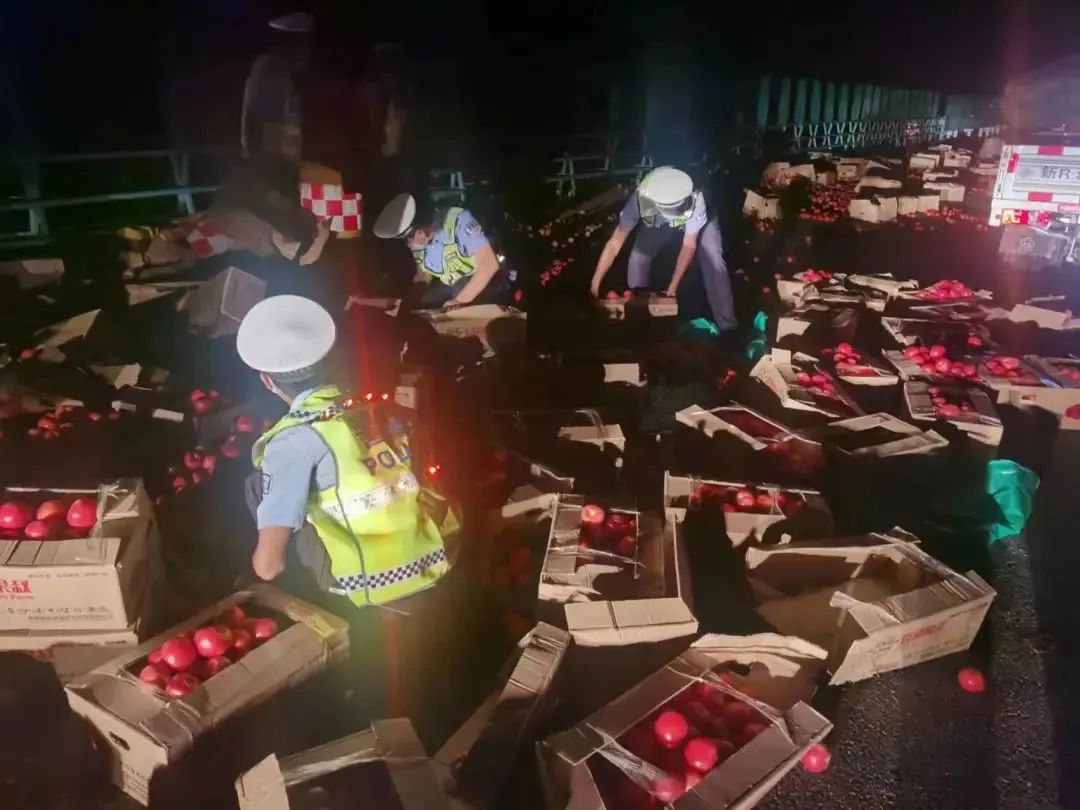 8月17日夜間,在和田地區洛浦縣往策勒縣方向,一輛貨車因爆胎發生側翻,5噸的西紅柿灑落一地。為迅速恢復交通,減少車主損失,民警冒著雨與司機一起將散落的西紅柿進行拾撿、裝箱,經過1個小時忙碌,終于將散落路面的西紅柿清理干凈,道路恢復正常通行。