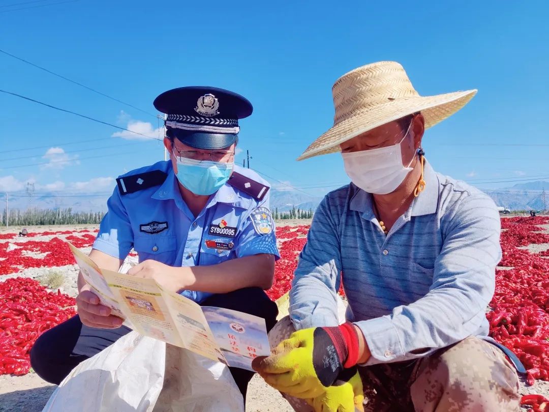 “現(xiàn)在電信詐騙防不勝防,千萬不要相信‘天上掉餡餅’的話,你們掙點兒錢不容易啊!”8月18日12時,在和碩縣克爾古提鄉(xiāng)路段附近戈壁灘的辣椒曬場上,侯洪武正在向分揀辣椒的務(wù)工人員宣傳電信詐騙知識。