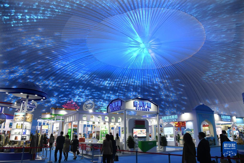 與會嘉賓在各國形象館展區(qū)參觀(2021年4月26日攝)。當日,2021上海合作組織國際投資貿易博覽會暨上海合作組織地方經貿合作青島論壇在青島開幕。新華社記者 李紫恒 攝