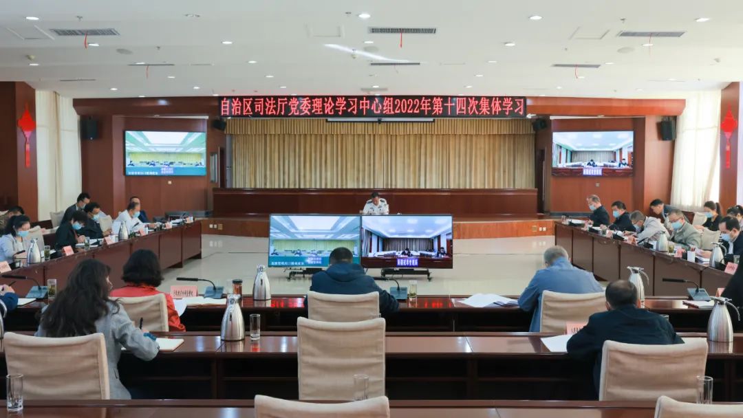 新疆平安網(wǎng)訊 2022年9月16日上午,自治區(qū)司法廳舉行黨委理論學習中心組2022年第十四次集體學習,深入學習領會習近平總書記在省部級主要領導干部專題研討班上的重要講話精神,以馬克思主義中國化時代化最新成果為指導,深刻領悟“兩個確立”,堅定不移推進中國式現(xiàn)代化,以法治建設和司法行政工作高質(zhì)量發(fā)展實際成效迎接黨的二十大勝利召開。