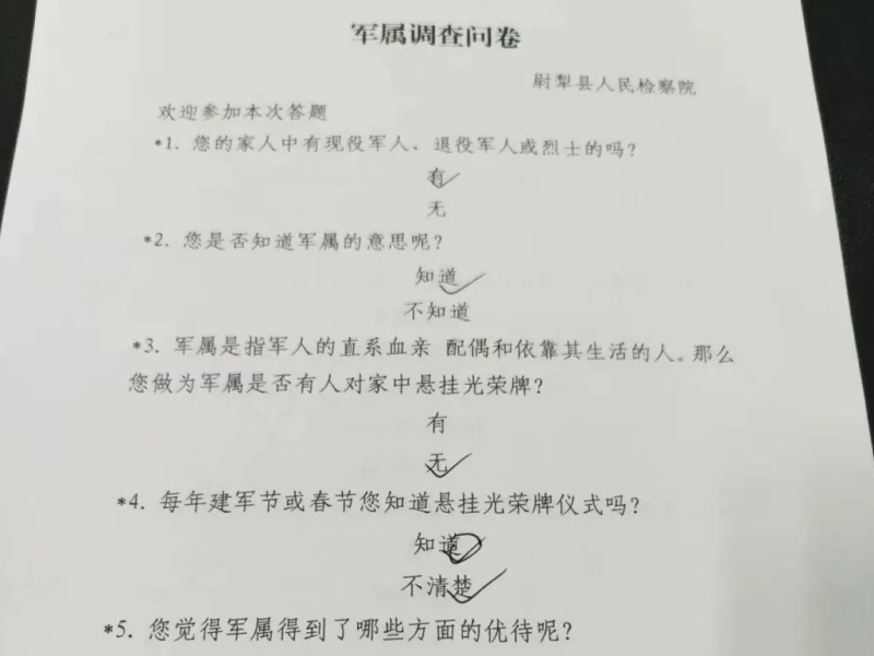 根據(jù)《為烈屬、軍屬和退役軍人等家庭懸掛光榮牌工作實施辦法》有關(guān)規(guī)定,尉犁縣人民檢察院向尉犁縣退役軍人事務(wù)局制發(fā)檢察建議,建議其及時為未懸掛光榮牌的現(xiàn)役軍人家庭發(fā)放并懸掛光榮牌,同時積極開展“光榮之家”牌匾懸掛宣傳,認(rèn)真做好全縣涉軍群體光榮牌發(fā)放對象的排查梳理,做到應(yīng)掛盡掛,激發(fā)全社會擁軍愛軍的熱情。