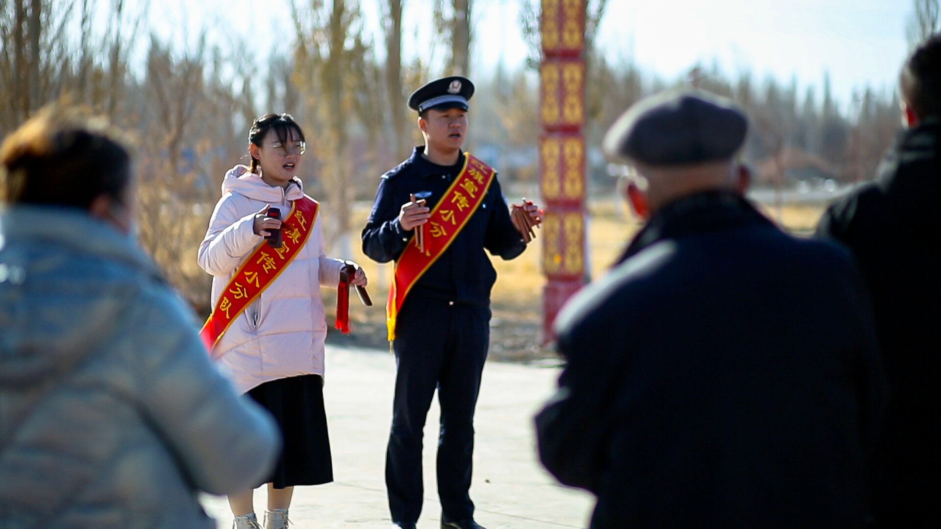 “二十大精神放光芒,要知大會講些啥?打起竹板聽我講……”11月25日下午16時許,在哈密市伊吾縣下馬崖鄉民族團結廣場,新疆出入境邊防檢查總站哈密邊境管理支隊下馬崖邊境派出所民警和鄉政府干部組成快板宣講隊,向駐地群眾宣講著黨的二十大精神。