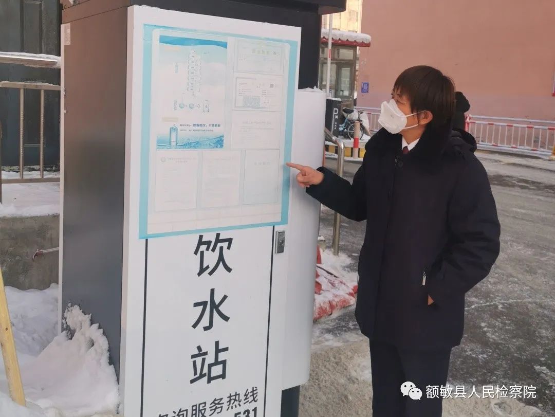 原來,額敏縣人民檢察院在履職中發現,轄區部分小區設置的現制售飲水機安全存在隱患,如許多飲水站機身上無水質檢測報告、衛生許可等信息,設備清洗、濾材更換、定期巡查流于形式,一些從業人員未辦理健康證、設備周邊環境臟亂等問題。