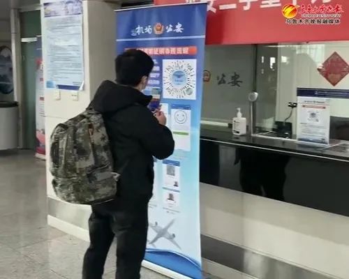 值班民警李鵬興一邊安撫他不要著急,一邊指向警務室窗前張貼的二維碼,幫助他掃碼,進入小程序依次輸入個人信息、人臉識別等,不到一分鐘就完成數據讀取、圖像采集、身份驗證、信息比對、證件辦理全套流程,直接辦理乘機手續。
