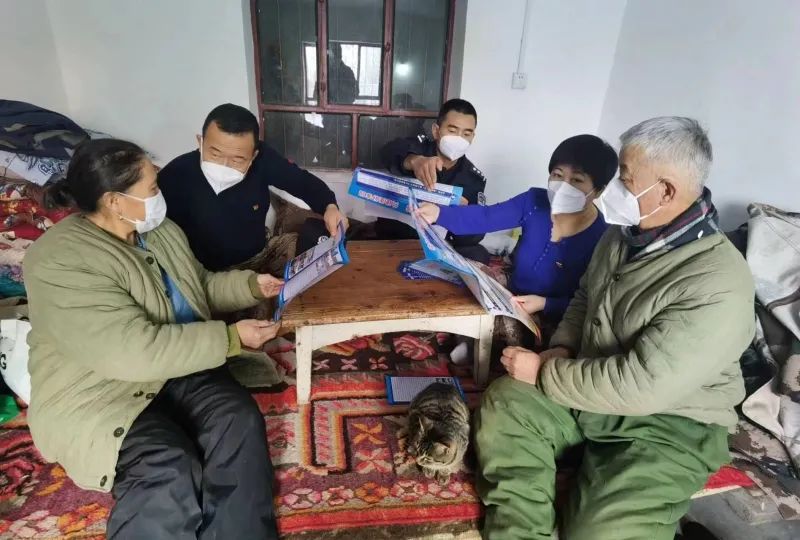 12月5日,付曉軍(左二)和新疆出入境邊防檢查總站博州邊境管理支隊(duì)青得里?邊境派出所博爾德邊境警務(wù)站站長呂博到轄區(qū)牧民家中宣傳法律知識。通訊員 依力夏提·買買提沙 攝