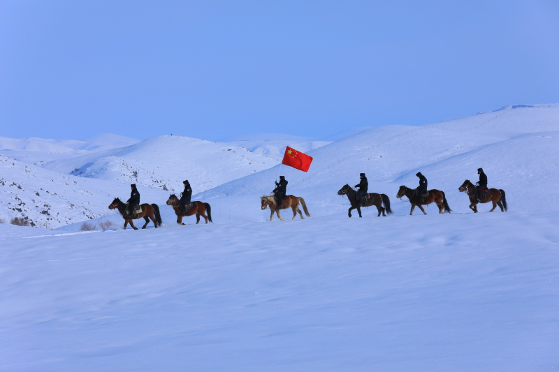 “今天風(fēng)很大,前面溝里雪也很厚,大家跟緊點(diǎn),拉著安全繩依次通過。”近幾日,哈巴河縣普遍降雪,薩爾布拉克鎮(zhèn)一帶降雪達(dá)到中量并伴有7級(jí)以上大風(fēng)。為確保邊境一線安全,新疆出入境邊檢總站阿勒泰邊境管理支隊(duì)薩爾布拉克邊境派出所黨支部書記、教導(dǎo)員謝小舟帶領(lǐng)民警和邊護(hù)員踏上了巡邊路。他說:“我們要以實(shí)際行動(dòng)把講政治貫穿到為人民群眾服務(wù)、為祖國(guó)守好邊境線上來,讓黨放心、讓群眾滿意。”